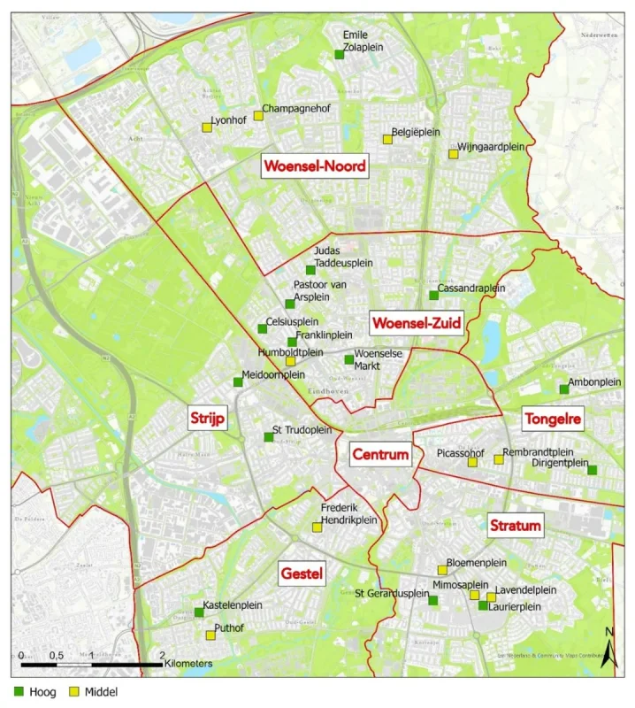 Om deze 26 pleinen transparant en uitlegbaar te prioriteren, zijn ze beoordeeld aan de hand van de vier functies van groen conform Eindhovens beleid: Klimaatadaptatie, Gezondheid, Biodiversiteit en Identiteit.